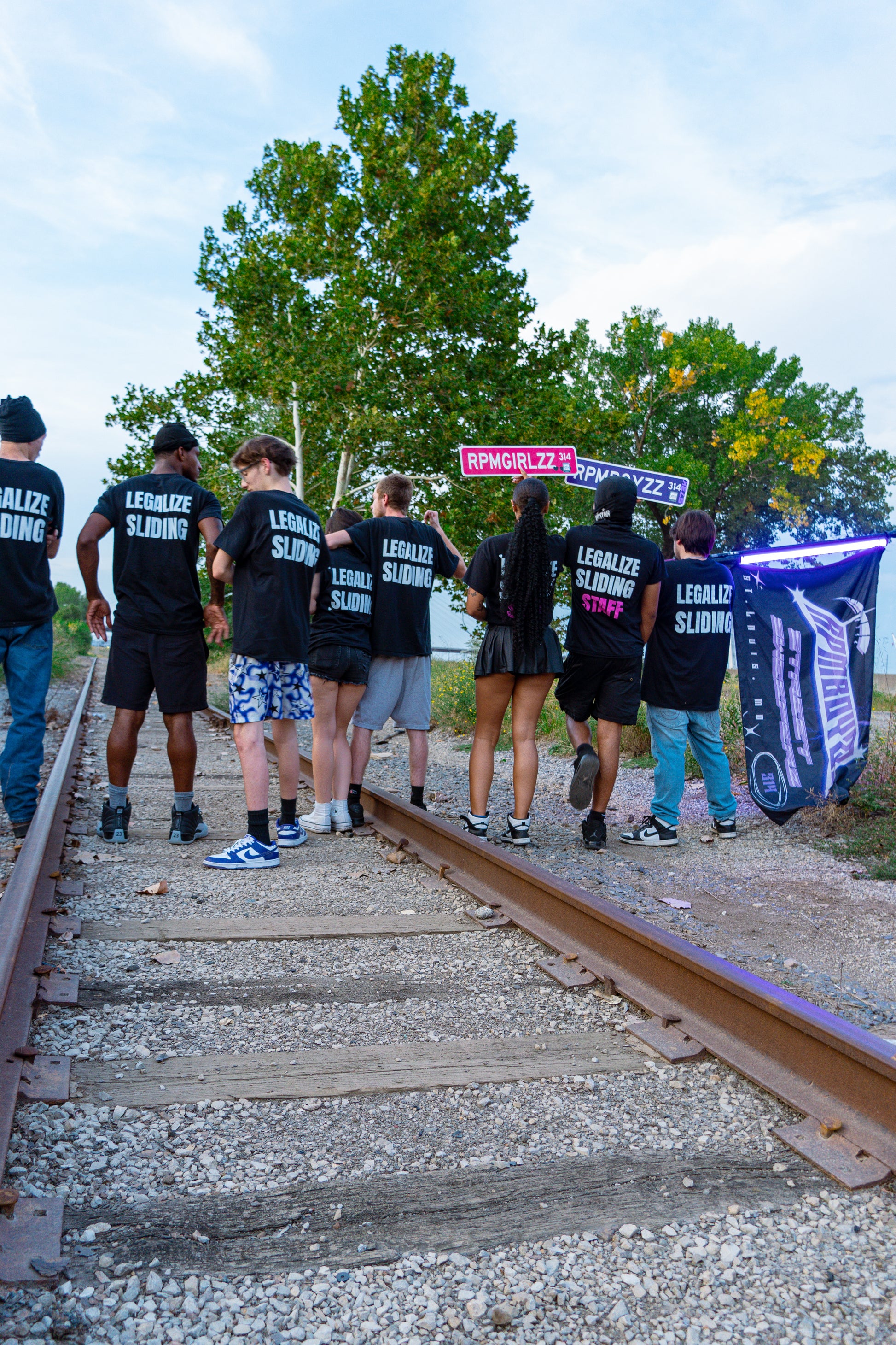 The back of the shirt boldly declares "LEGALIZE SLIDING." This powerful message represents the goal of creating a legal framework for street drifters to practice their sport without facing penalties.